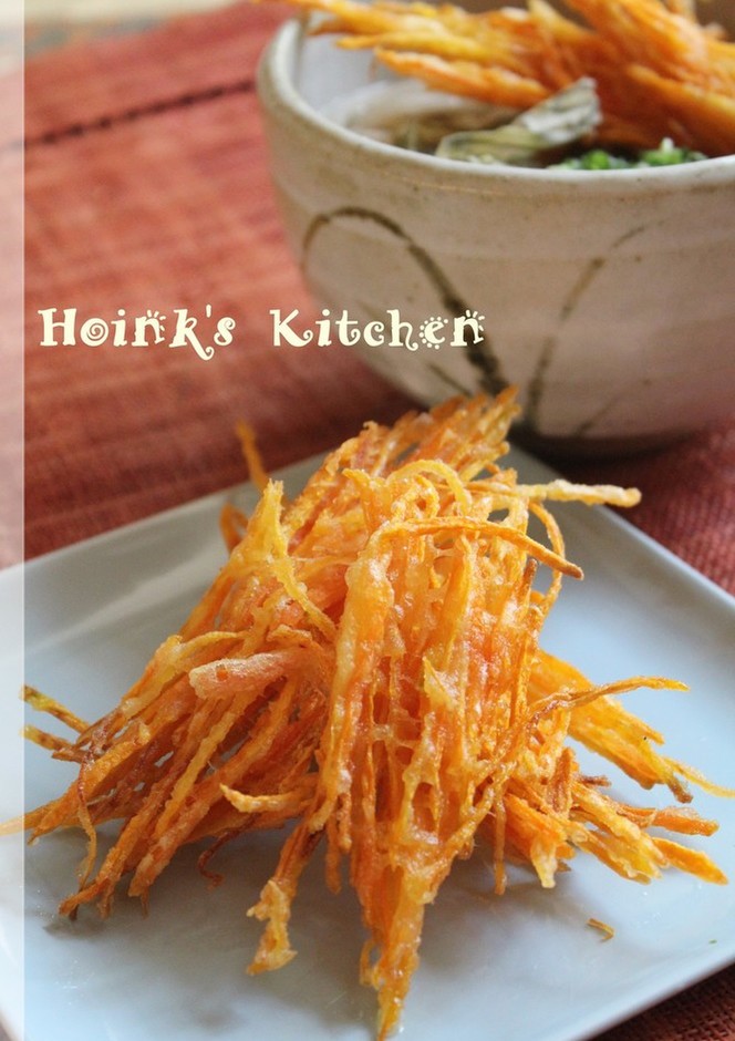 天ぷら粉いらずでカリカリ!にんじんの天ぷら かきあげ。