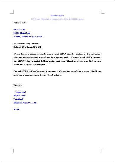 新商品のご案内 テンプレート詳細 英文レター・求人応募 - ビジネス文書のポータルサイト B-Form.biz ビーフォームビズ。