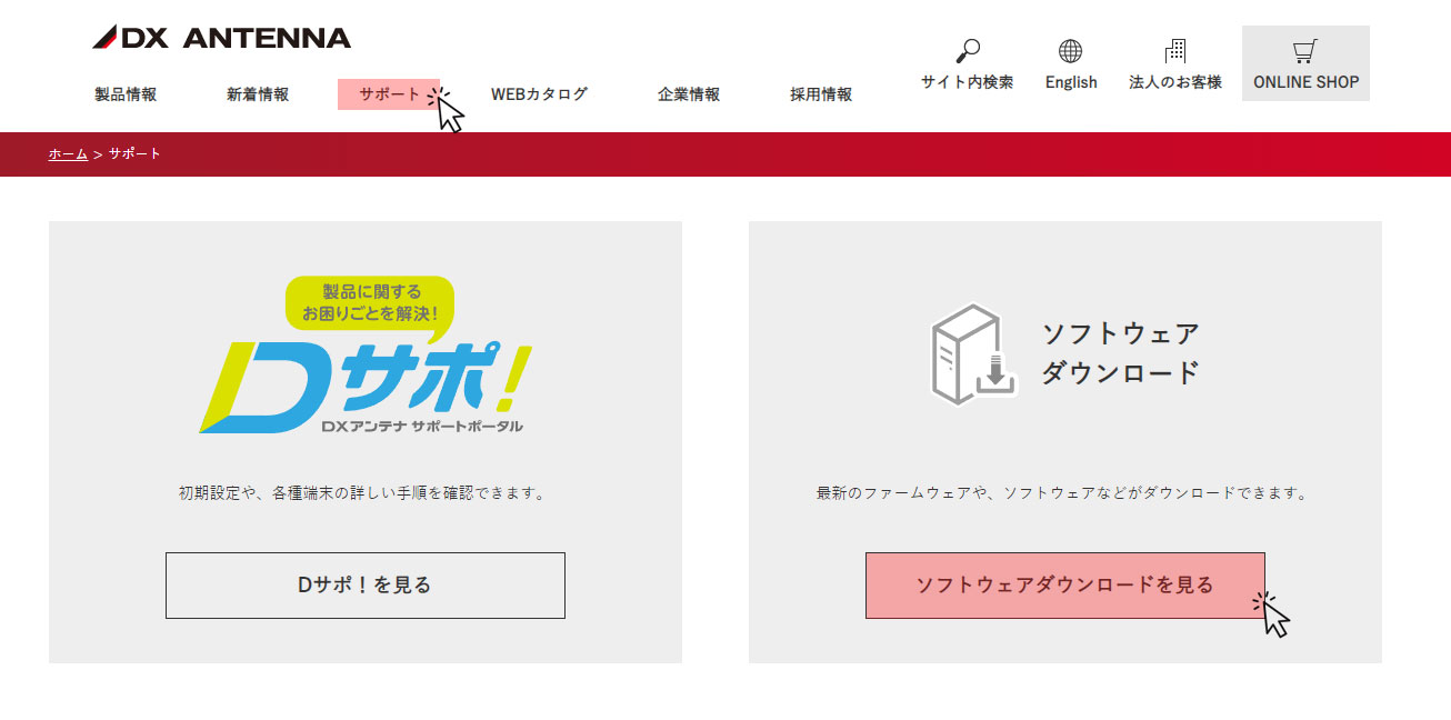 ソフトウェアダウンロードページ公開のお知らせDXアンテナ。