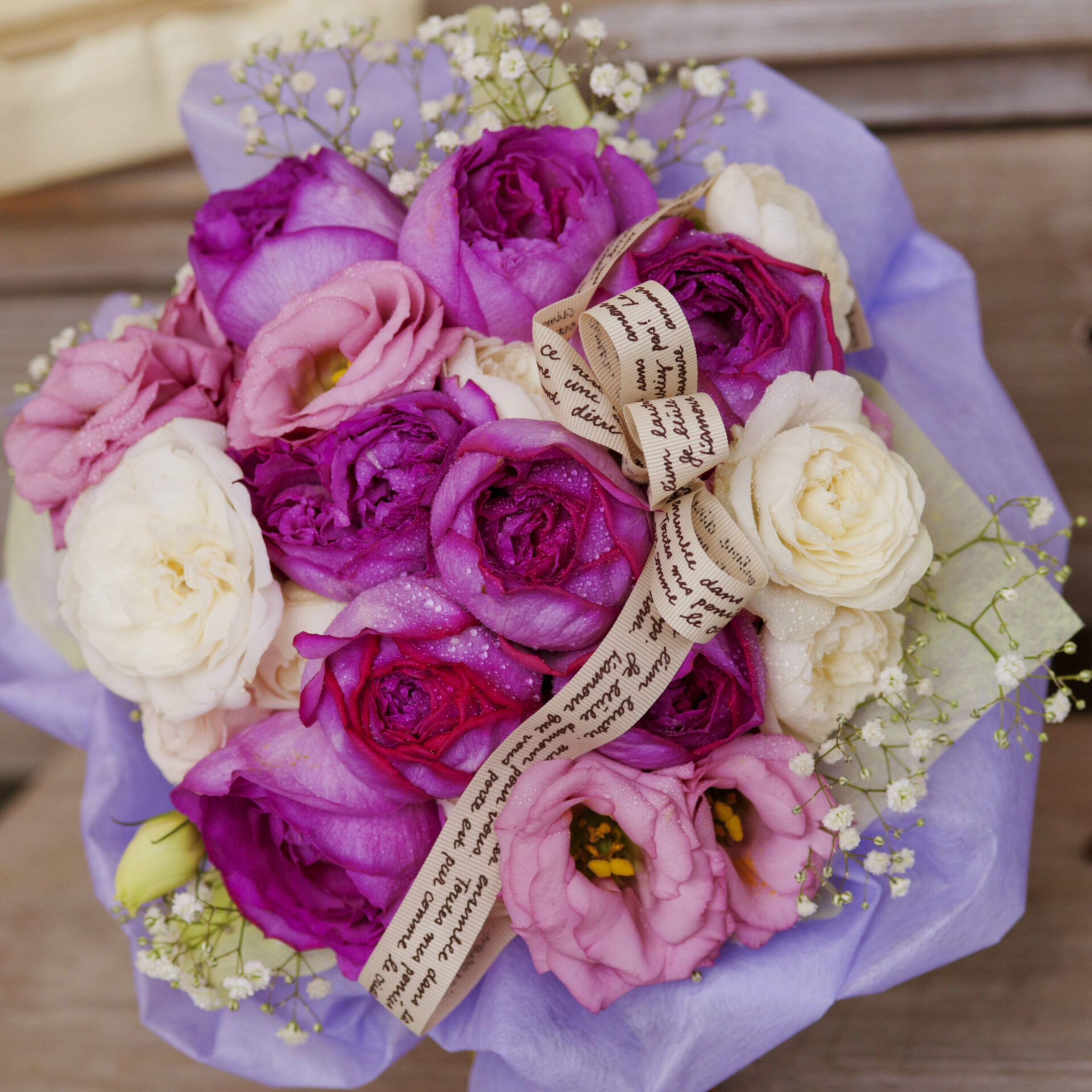 カスミソウ入り紫・ピンクの花束 5,000円 – 花・花束の通販サイトHanaTaku。