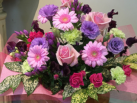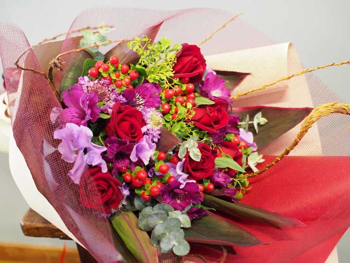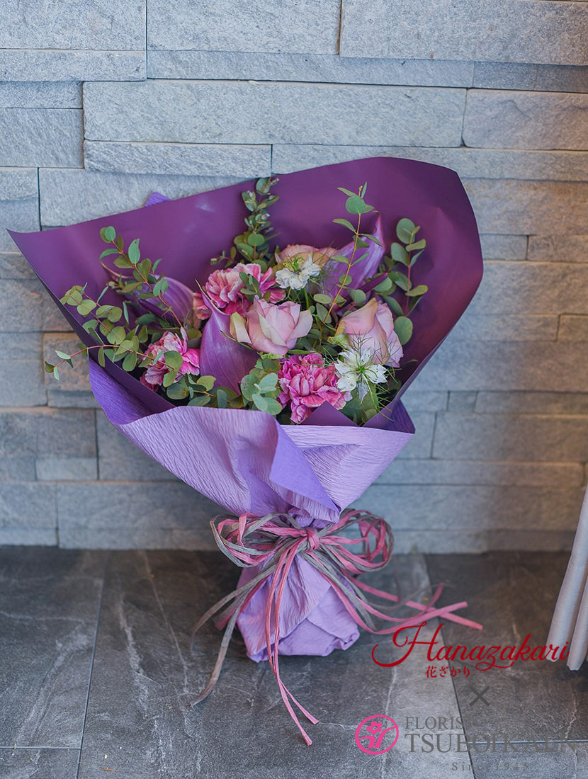 お誕生日に贈る、紫・ピンク系の花束花の店 凜花屋のオンラインショップ 東京・駒沢。