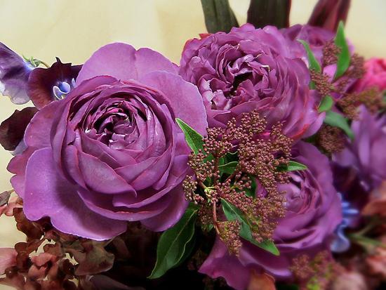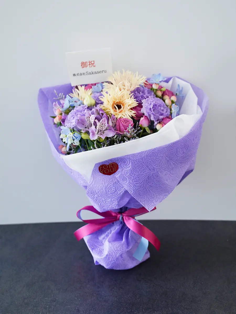 紫色の花束は長寿祝いや退職祝いおすすめ 内閣総理大臣賞受賞のフローリストからお届け。