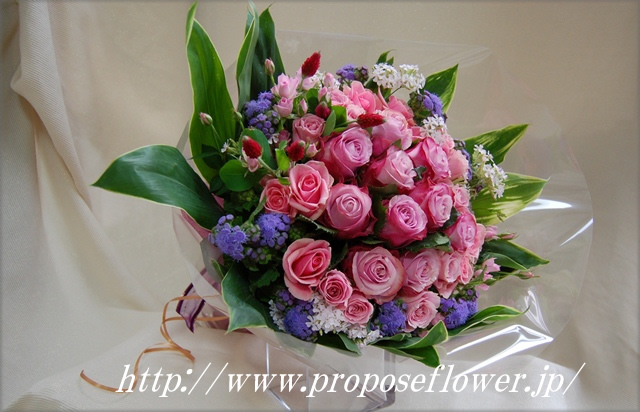 H.ピンクのバラ ブーケ群馬県高崎市のフラワーギフト・フラワーアレンジメント、花束のお花屋さんです。