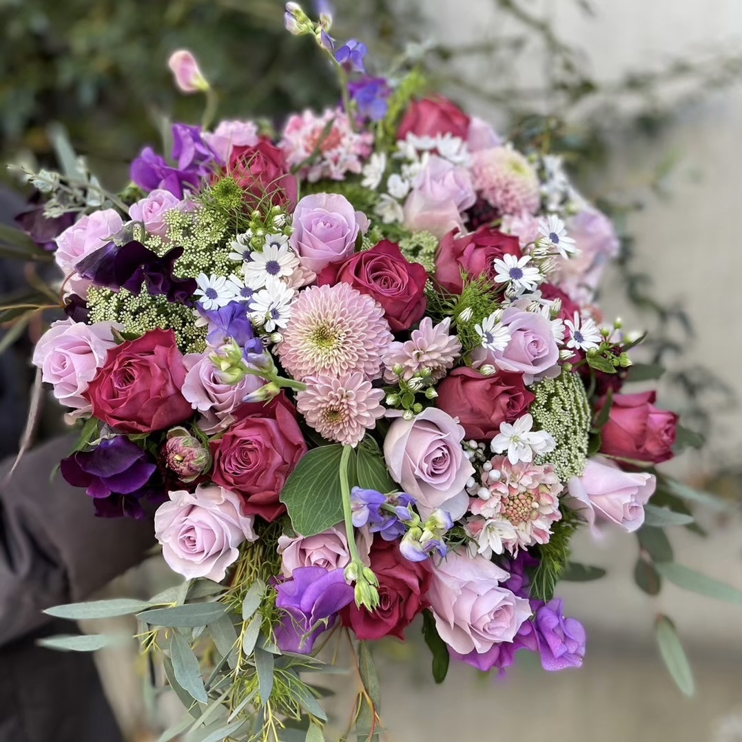 ピンク紫系 季節の花束fleuriste titica。