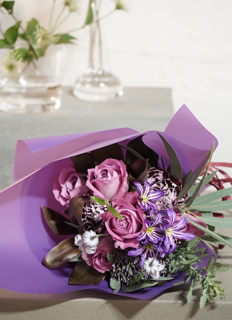 花束 おしゃれなラッピング お任せ紫系フラワーギフト・花の通販サイト「フロレット」。