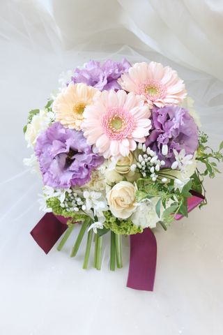 桃紫色の花束 ブーケ約37㎝ウェディング・ピンク・紫・花束・ブーケ・誕生日・母の日アートフラワー le vent vert 緑の風 通販17618948Creema クリーマ。