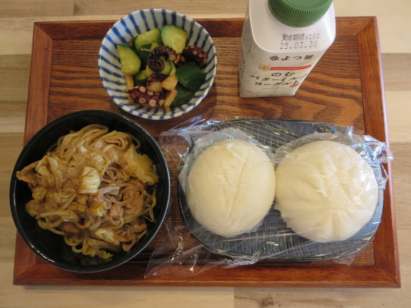肉まん、あんまんの献立 2025年3月25日の昼ごはん我が家の献立の記録、糖尿病で食事制限、リウマチの記録。