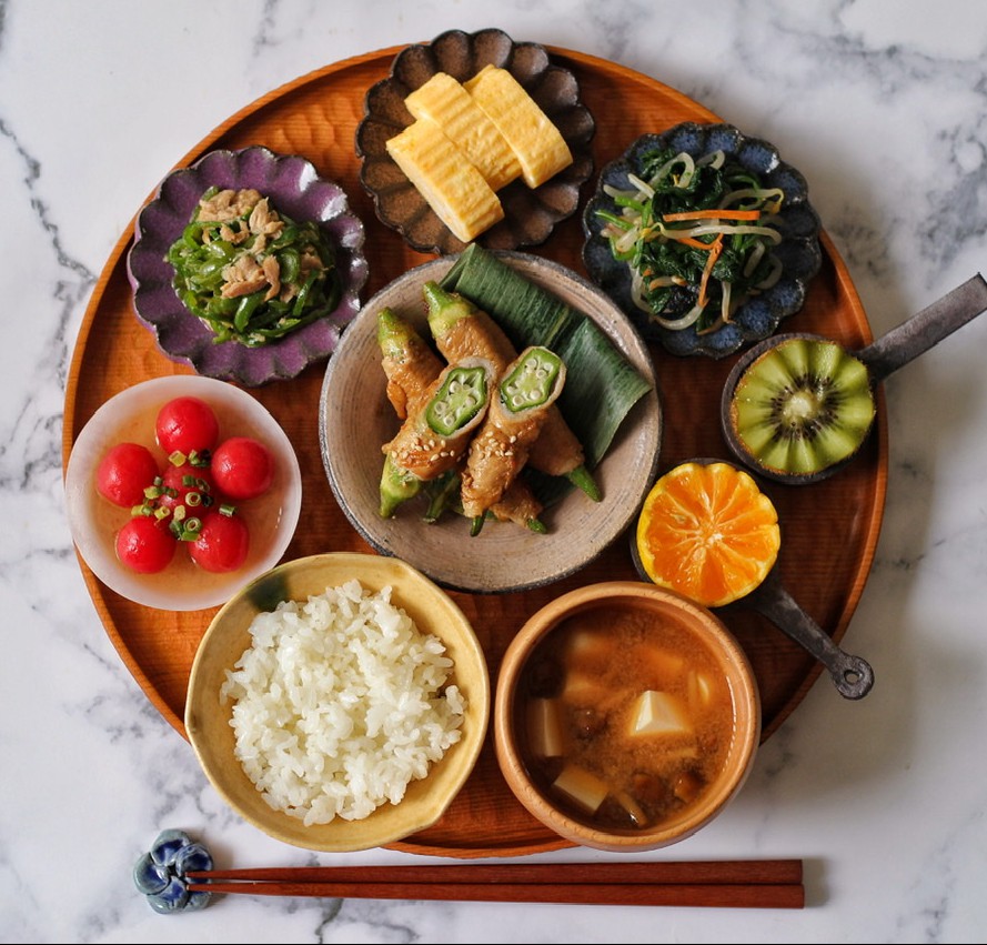 1週間の献立 平日の和食朝ごはん 食べ過ぎた時の調整メニュー 満足サラダ🥗。