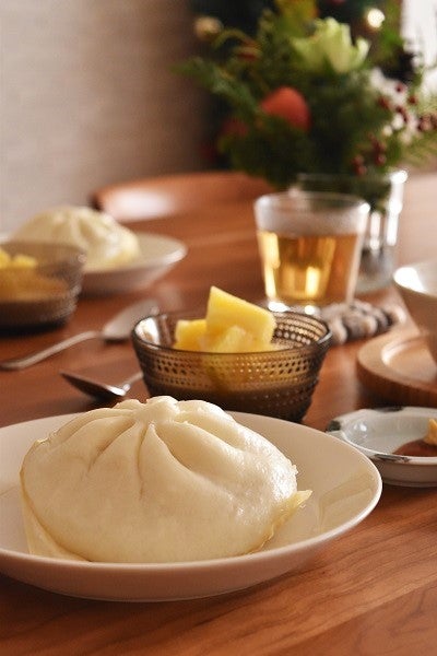 クリスマス気分で、肉まん朝食。毎日、おいしく、楽しく。