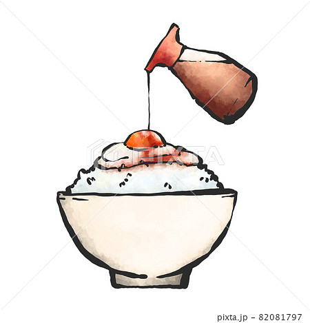 卵かけご飯に醤油をかける手描き筆絵風イラストのイラスト素材82081797- PIXTA。