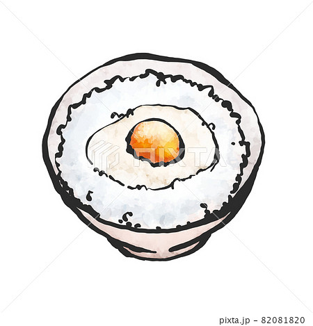 白い茶碗の卵かけご飯の手描き筆絵風イラストのイラスト素材82081800- PIXTA。