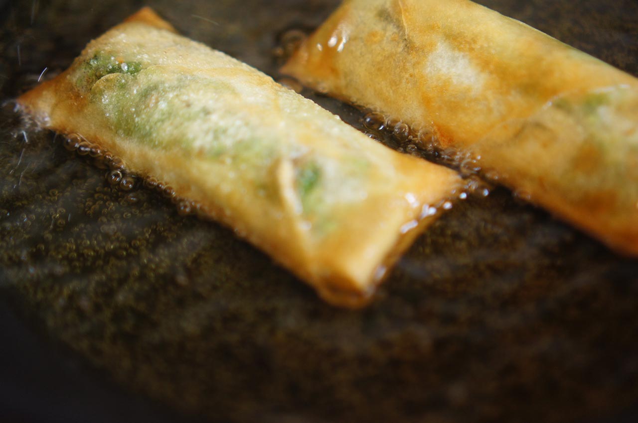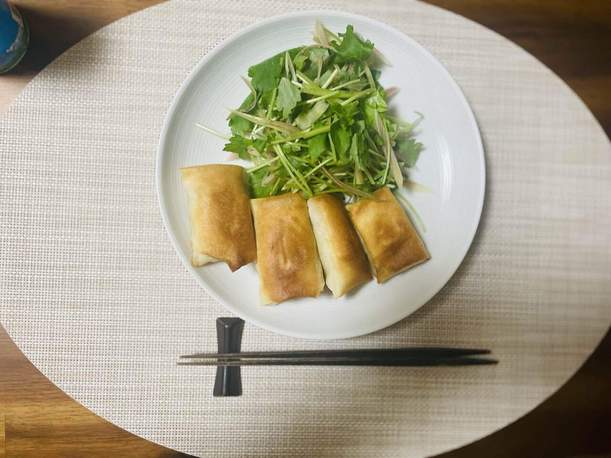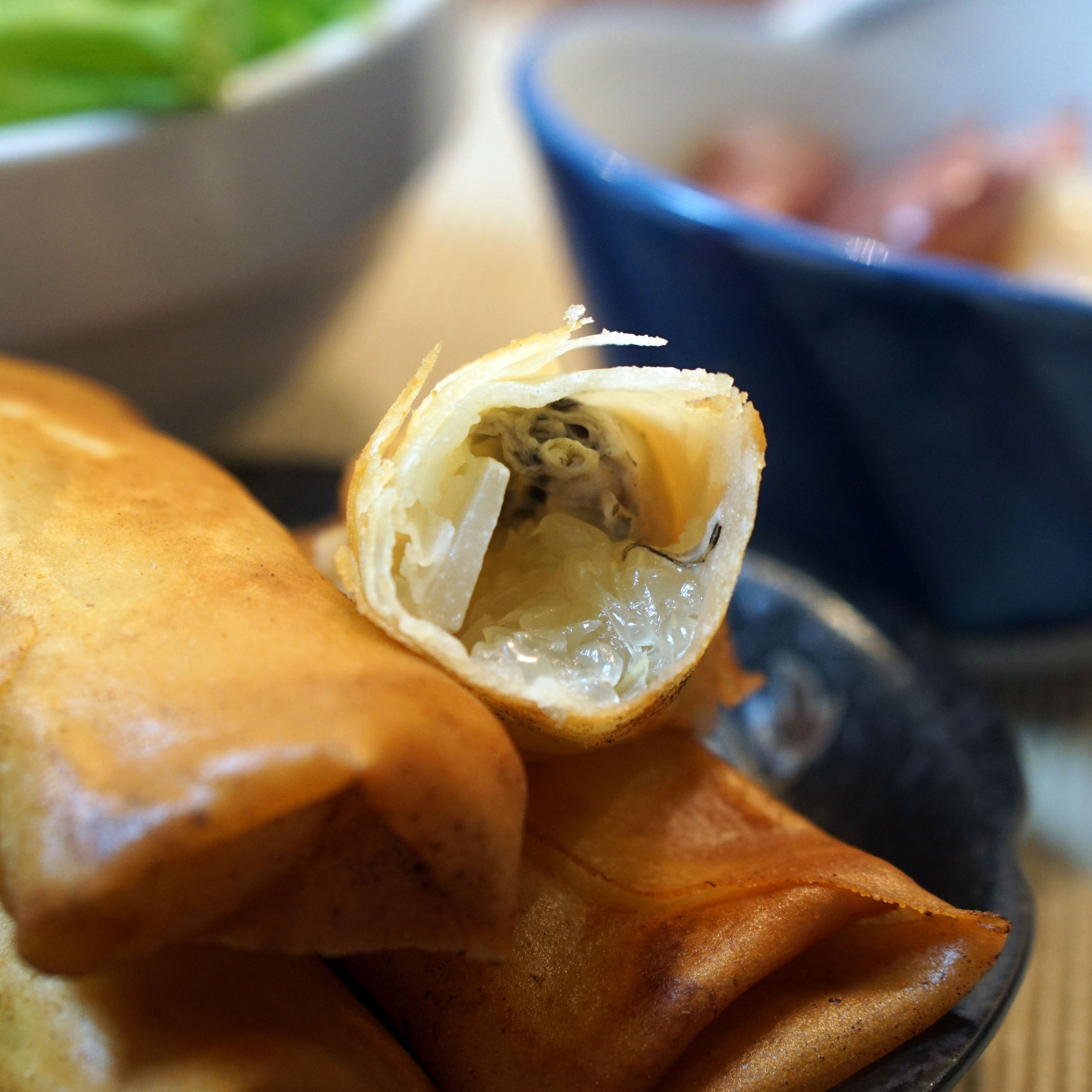 免疫力アップ&肝臓もいたわりたい人へ!牡蠣とレタスの春巻き フライパンひとつのワンパンレシピ。