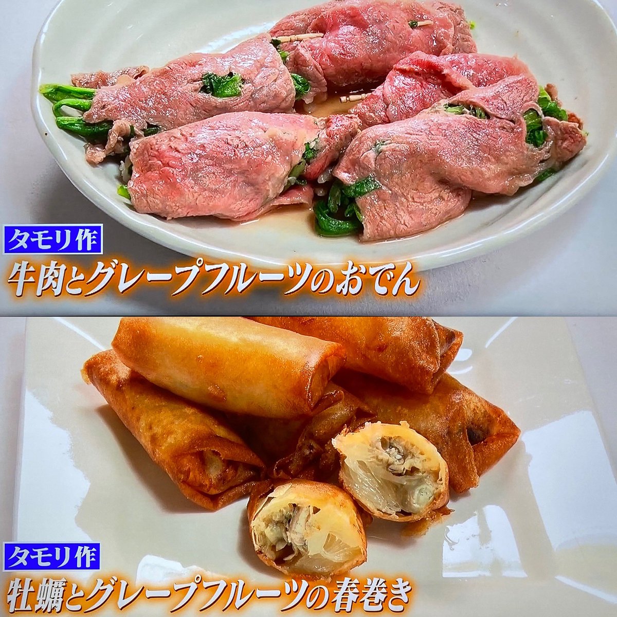 Rui على X: "タモリ倶楽部で紹介してたグレープフルーツ料理みんな美味しそう✨ 作ってみたい✨ 牡蠣とグレープフルーツの春巻きとかすっごくジューシーそう前にレモンと野菜でサラダパスタ作ったら美味しかったからそれグレープフルーツ果肉で作っても美味しそう。