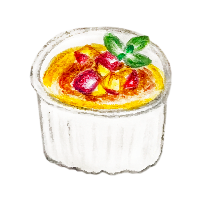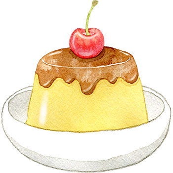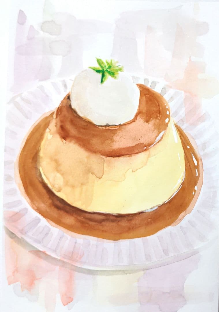 カスタードプリンの水彩イラスト水彩の挿し絵屋さん。