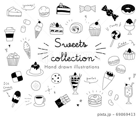 白黒、モノトーン、線画のイラスト 手書き、オシャレ、雑誌、カフェ、ファッション、パン、プリン のイラスト素材82982221- PIXTA。