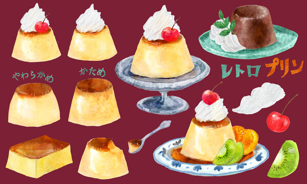 喫茶店のプリンのカットイラスト 手描き水彩のイラスト素材91246362- PIXTA。