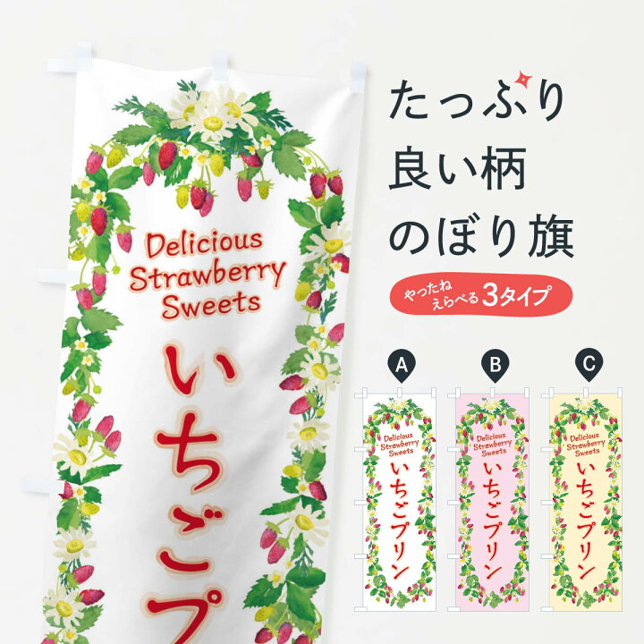 楽天市場ネコポス送料360のぼり旗 いちごプリン・苺・水彩・手書き・イラストのぼり XYSH グッズプロ名入れできます+1017円:グッズプロ。