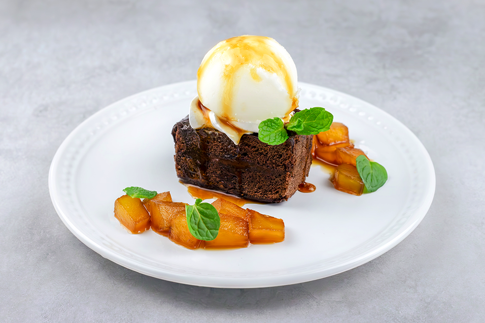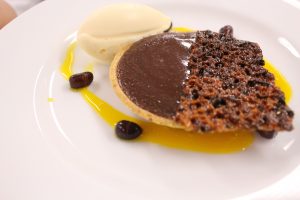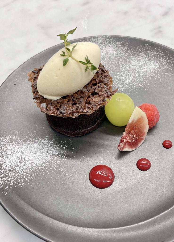 濃厚チョコレートアイスクリームをプレートパフェに盛り付けてみましたインターネットお菓子教室「Sweets Clover」。