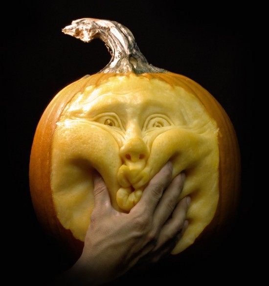 炸裂したかぼちゃからリアルな顔が出現するハロウィンのカボチャアートnaglly.com。