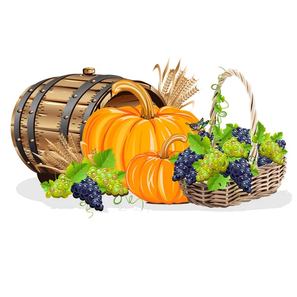 カボチャ ブドウ 黄色の葉で幸せな感謝祭の日の背景 秋休み ベクターイラスト ストックベクター ©Liana2012 428841822。