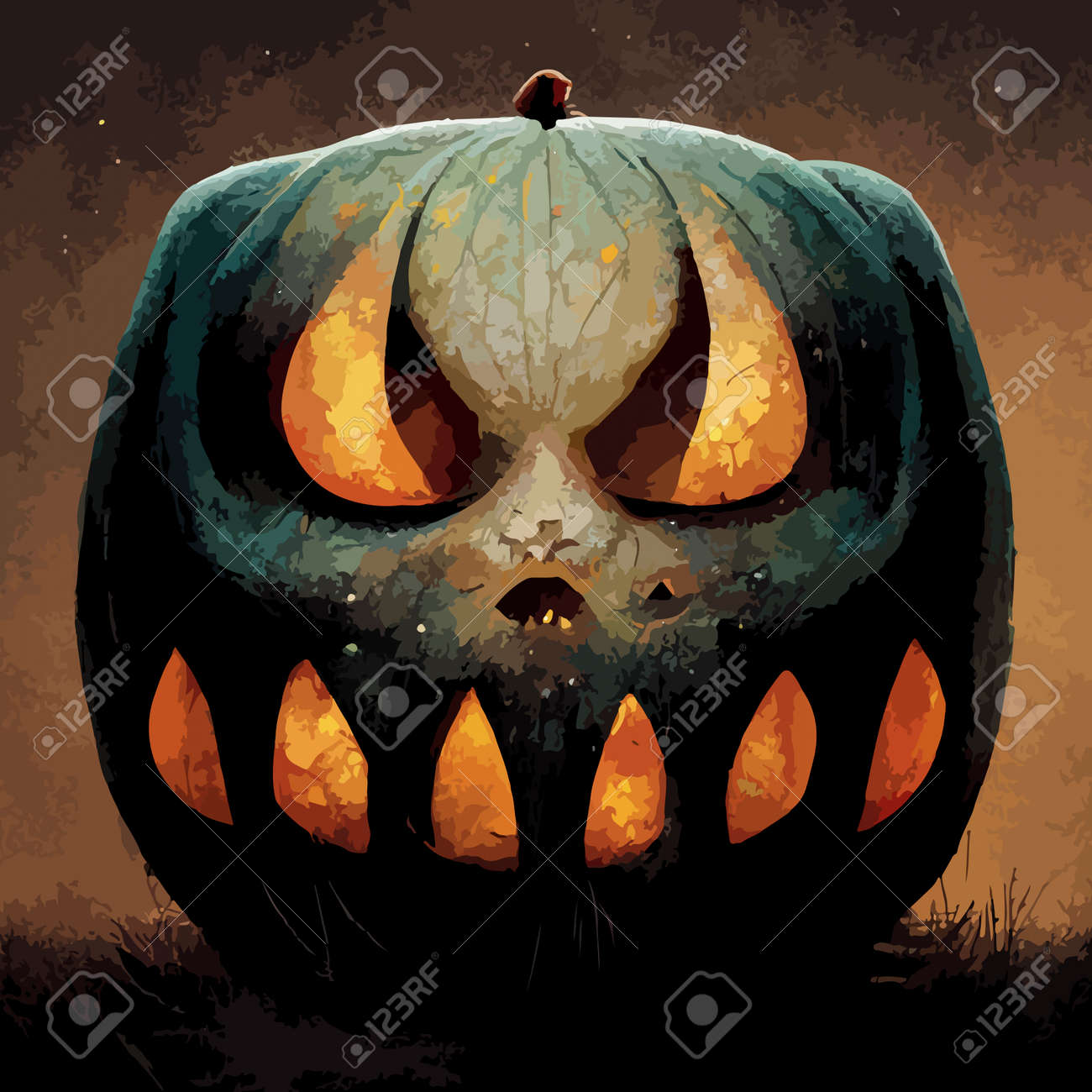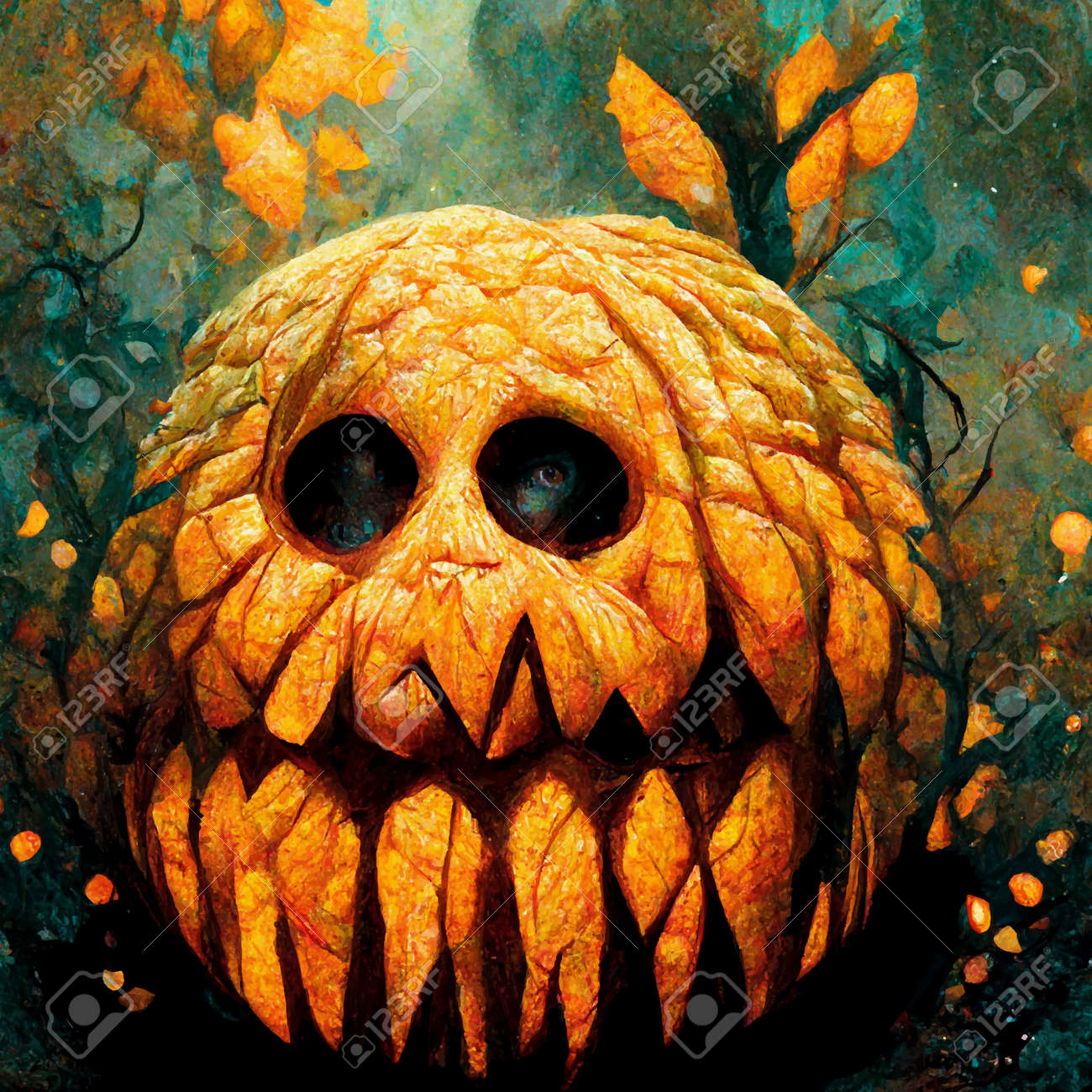 邪悪なカボチャのリアルなイラスト。ハロウィーンをテーマにしたイラスト。リアルなハロウィーンの背景。の写真素材・画像素材 Image 190652011。