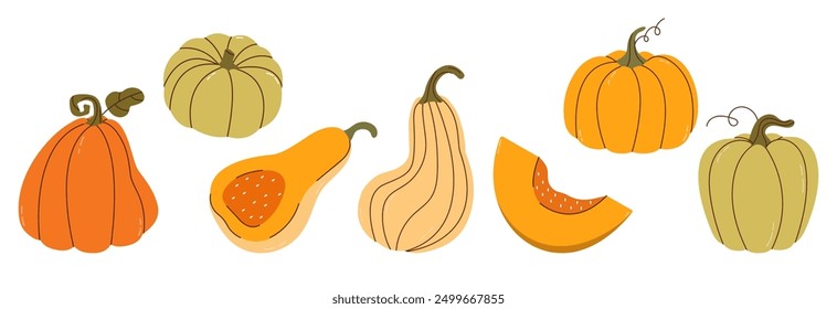 白い背景にベクター手描きのカボチャセットビンテージのリアルなスタイルのカボチャイラスト鉛筆描きの野菜アウトラインスタイルのイラストファーム市場製品。使いやすいスケッチ。」のベクター画像素材 ロイヤリティフリー2052918083Shutterstock。