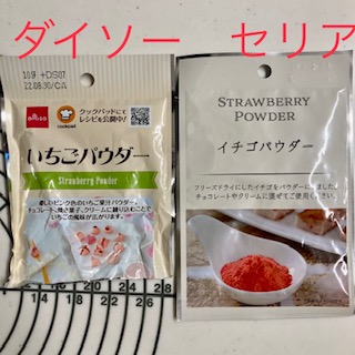 イチゴパウダー ダイソー&セリア100均 比較!ケーキやチョコに加えてみた結果 - 100均✖Sweetsレシピ‼。