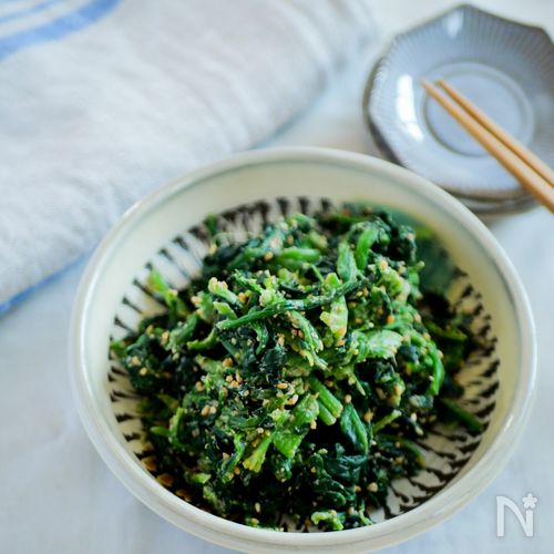 電子レンジ3分で完成 冷凍ほうれん草の濃厚ごま和え。