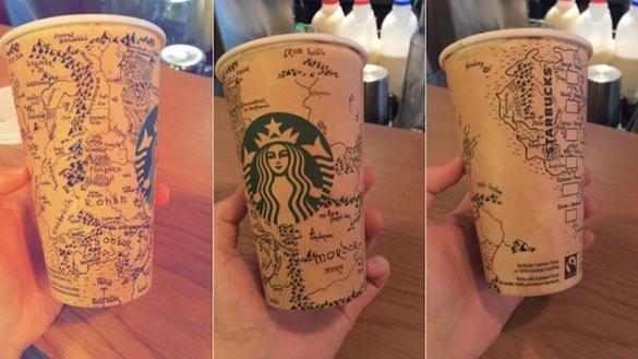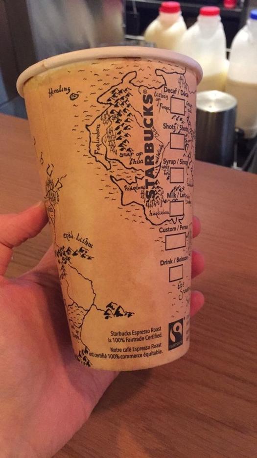 スタバの紙コップに『ロード・オブ・ザ・リング』の地図が隠れていたよROOMIE ルーミー。