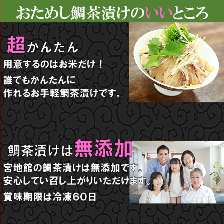 楽天市場 賞味期限2日 鯛茶漬け 家庭用 並盛 生 冷蔵6食 無添加 送料無料 高級 活魚使用 手造り たい タイ 鯛 マダイ 真鯛 鯛丼 鯛めし刺身 海鮮 名物 福津名物 お茶漬け 茶漬け 冷やし茶漬け おちゃづけ お取り寄せ プレゼント : 宮地館。