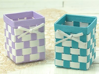 簡単!クラフトバンドの三つ編みのギフトかご mini basket の作り方1🌼プチプレゼントやホワイトデーに はじめてのエコクラフト・クラフトバンドDIY - YouTube。