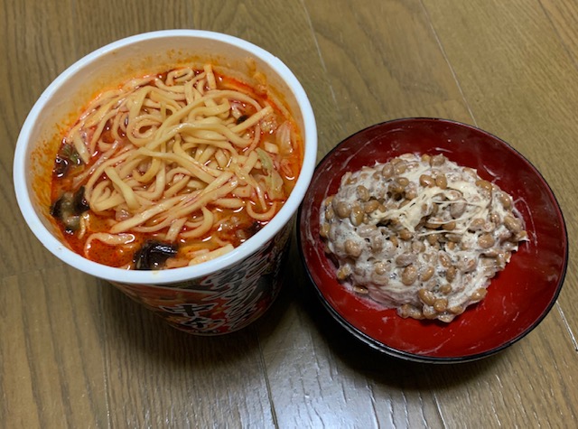 蒙古タンメン中本カップ麺×納豆は、旨いのか?Hiromu Akai。