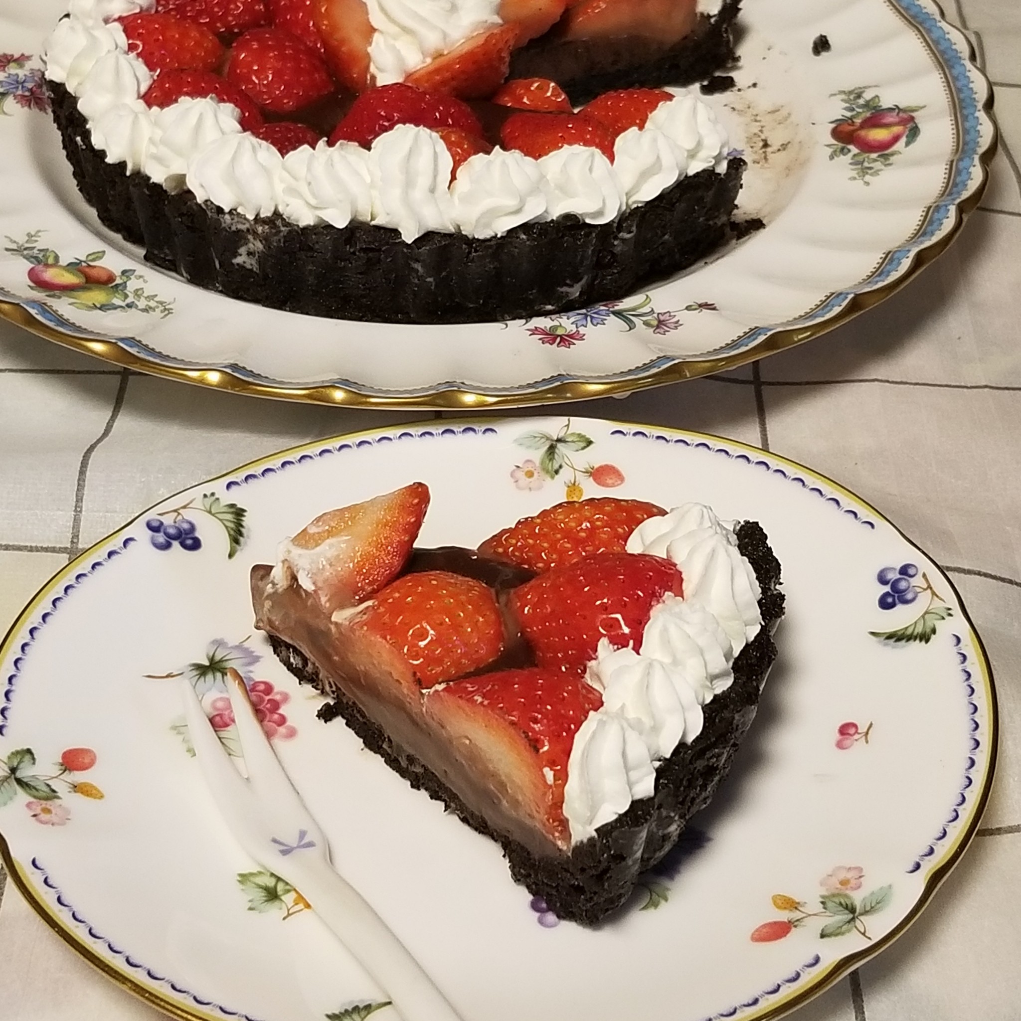 チョコレートタルト 苺と生クリームでおめかししちゃった sakurakoSnapdish スナップディッシュID:SenDXa。