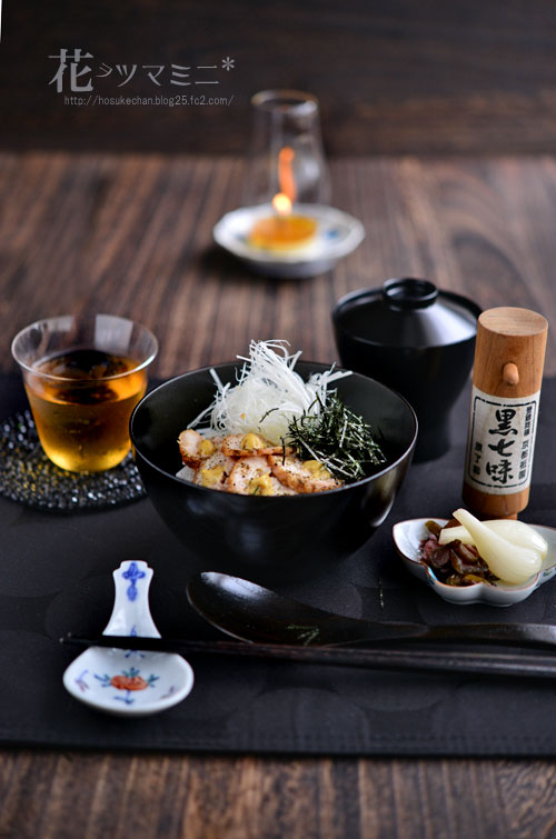 鶏チャーシューをつ盛り付けた器&盛り付けについて。