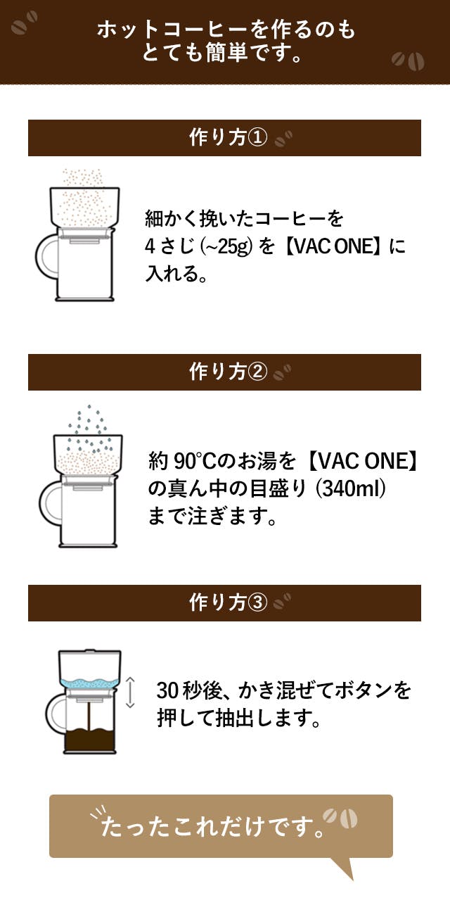 ホットコーヒーが約30秒で簡単プロの味。水出しも約4分で作れる VAC ONE- CAMPFIREキャンプファイヤー。