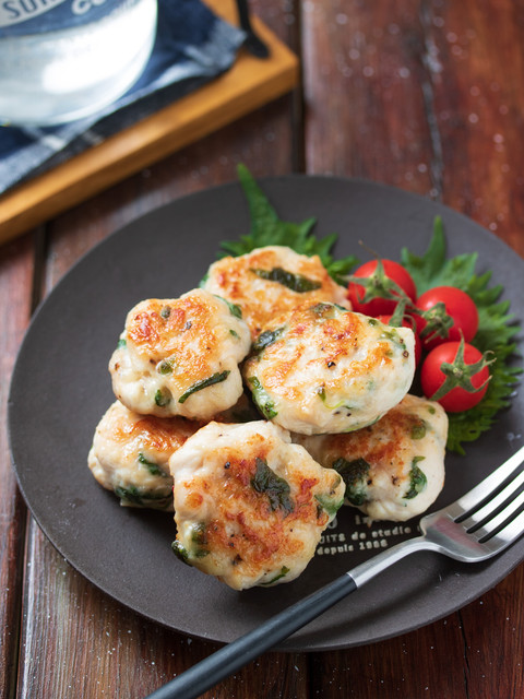 鶏むね肉のしそチーズつくね ゴロっと食感で食べ応え十分!。