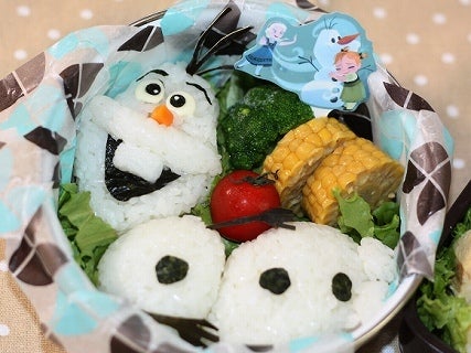 オラフのおにぎりが入ったキャラ弁-アナ雪弁当 – お弁当の詰め方と盛り付けのコツ – ピクニックにもおすすめOH!BENTO – おこさま弁当 の記録とレシピのメモ。