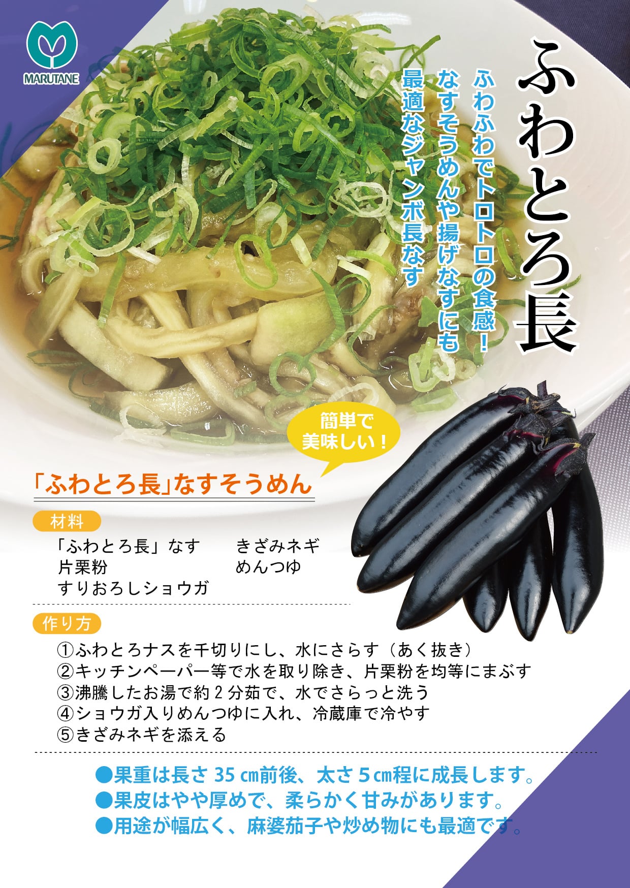 ナスとろ~り旨なす®️加熱すると、ねっとりした食感に変化。皮が白いので、他の食材に色移りしない。 食感をダイレクトにわかってほしくて「揚げてトルコ」から改名しましたトキタ種苗の野菜品種カタログ・栽培ガイド。