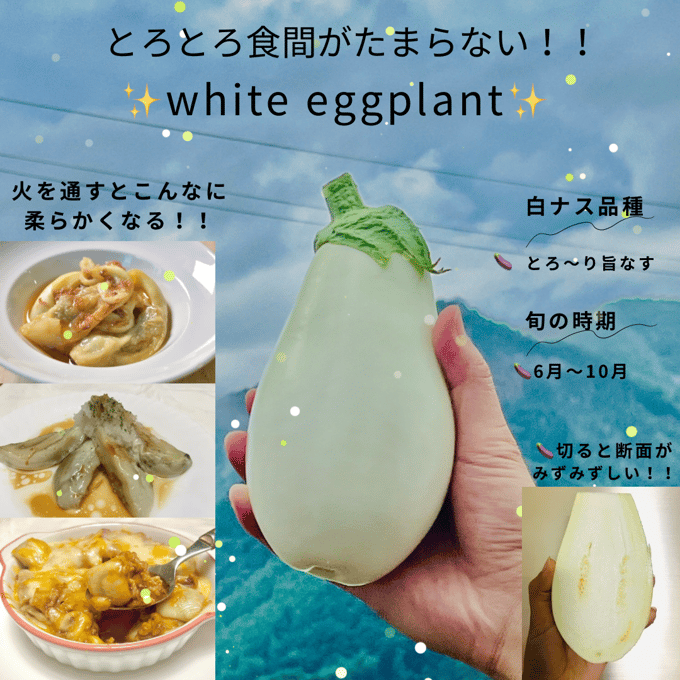 とろとろ食感がたまらない!見た目も魅力的な白ナス。