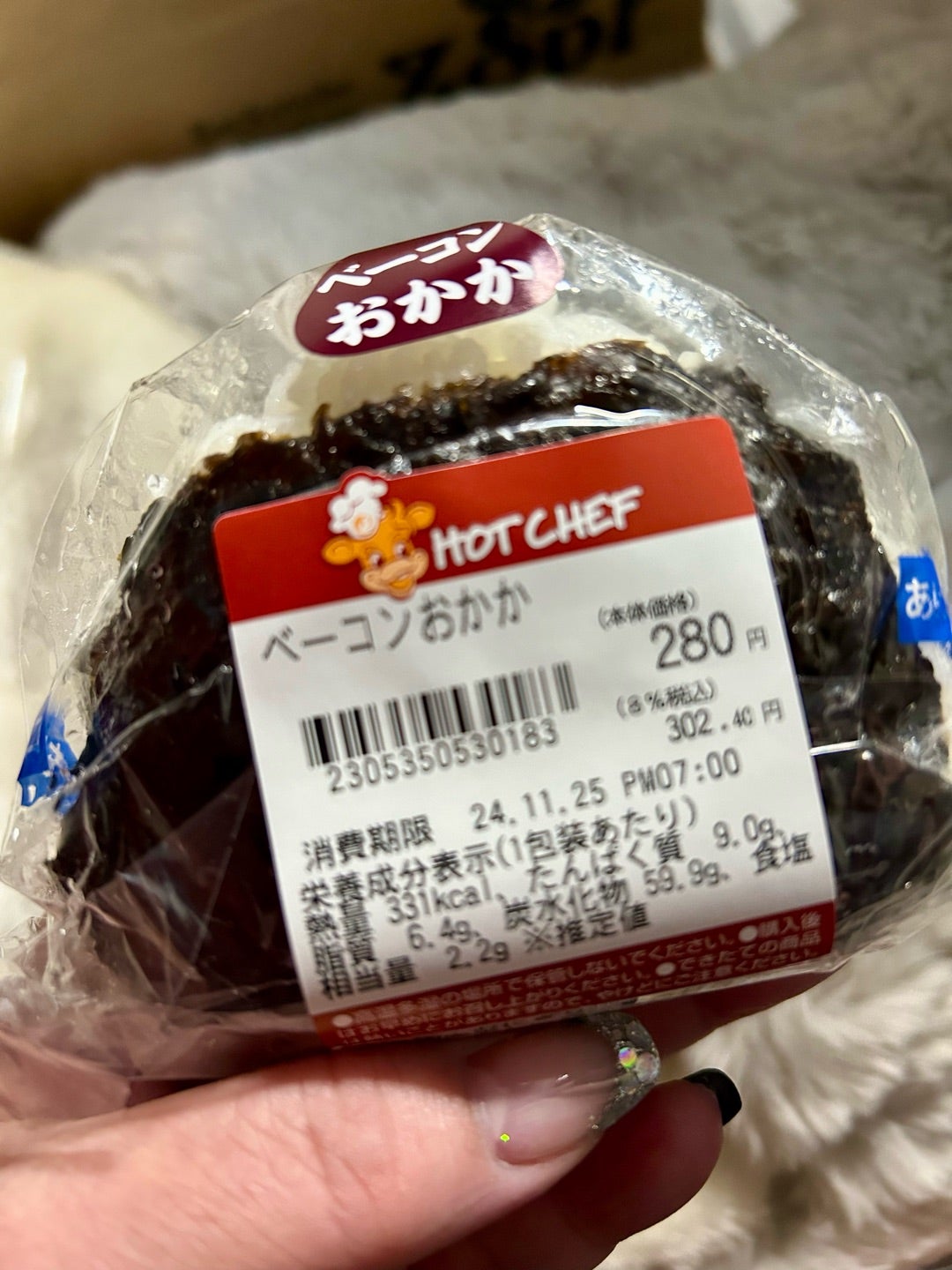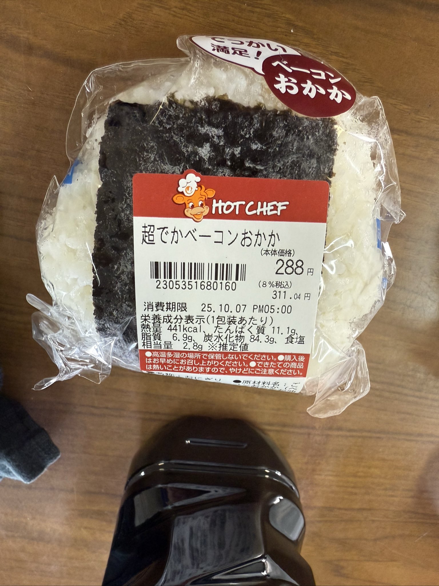 たむちん@意識他界系 🐣❤️🔥・🍥🐟 on X: "朝の㌍ 超でかおにぎり ベーコンおかか 鮭と迷ってこちらにセイコーマートセコマホットシェフ https:t.co T3oF0bvOGW"X。