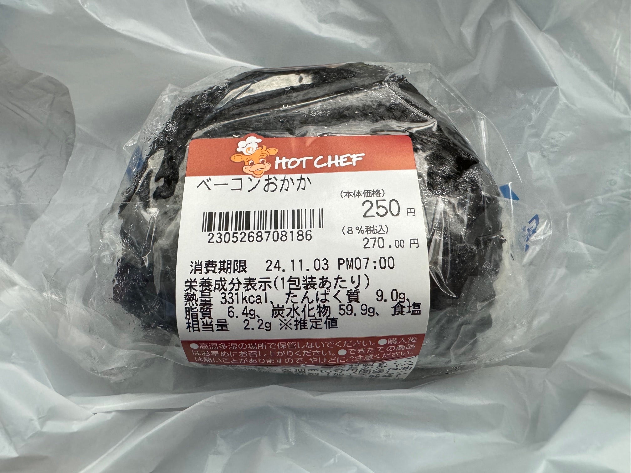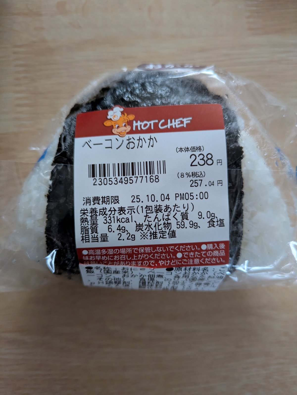 セコマ HOT CHEFのおにぎり ベーコンおかか必然の出会いだった - セコマ美味しい。