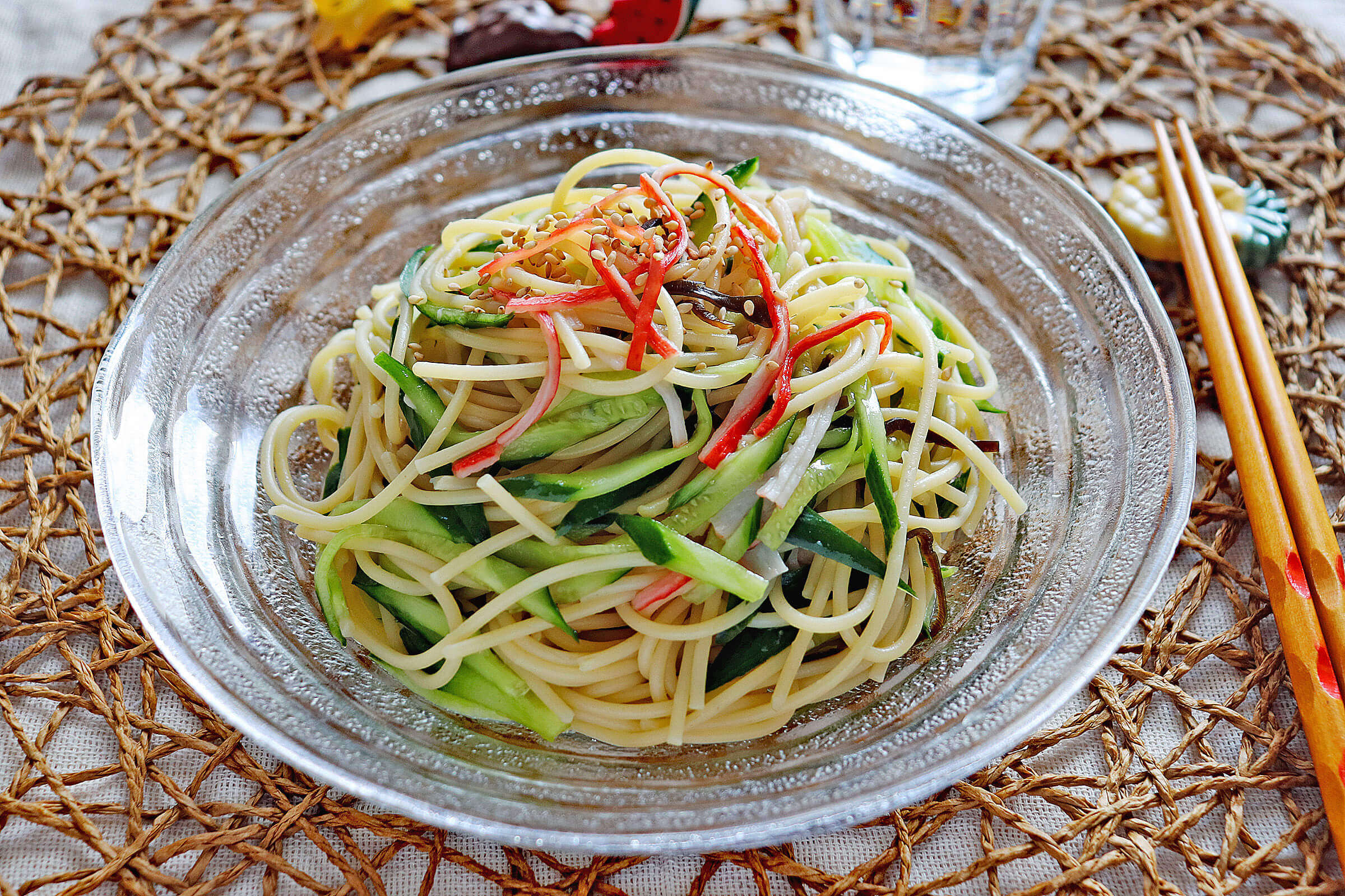 かにかまときゅうりの和風冷製パスタ 味付けめんつゆ簡単キュウリ消費にも レシピ・作り方 - 筋肉料理研究家Ryotaのレシピブログ。
