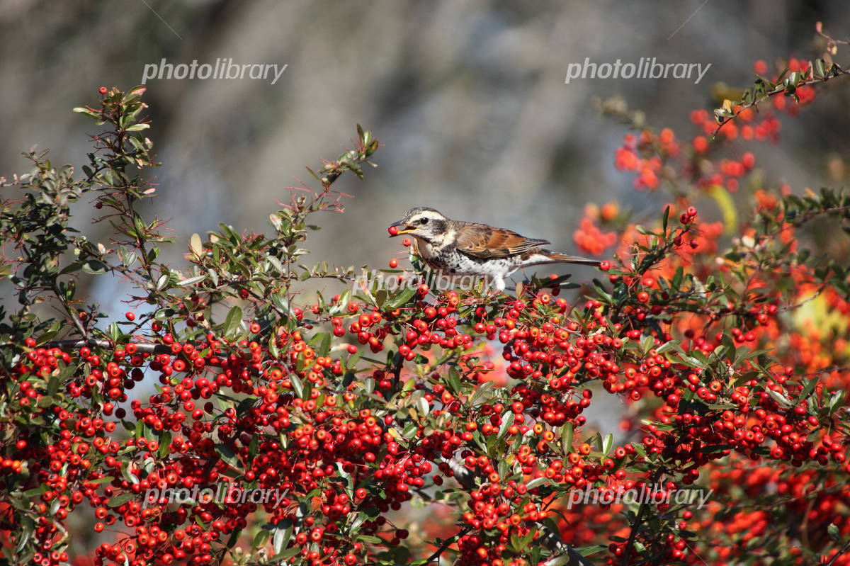 ピラカンサの実を食べるメジロ 写真素材1199904- フォトライブラリ。