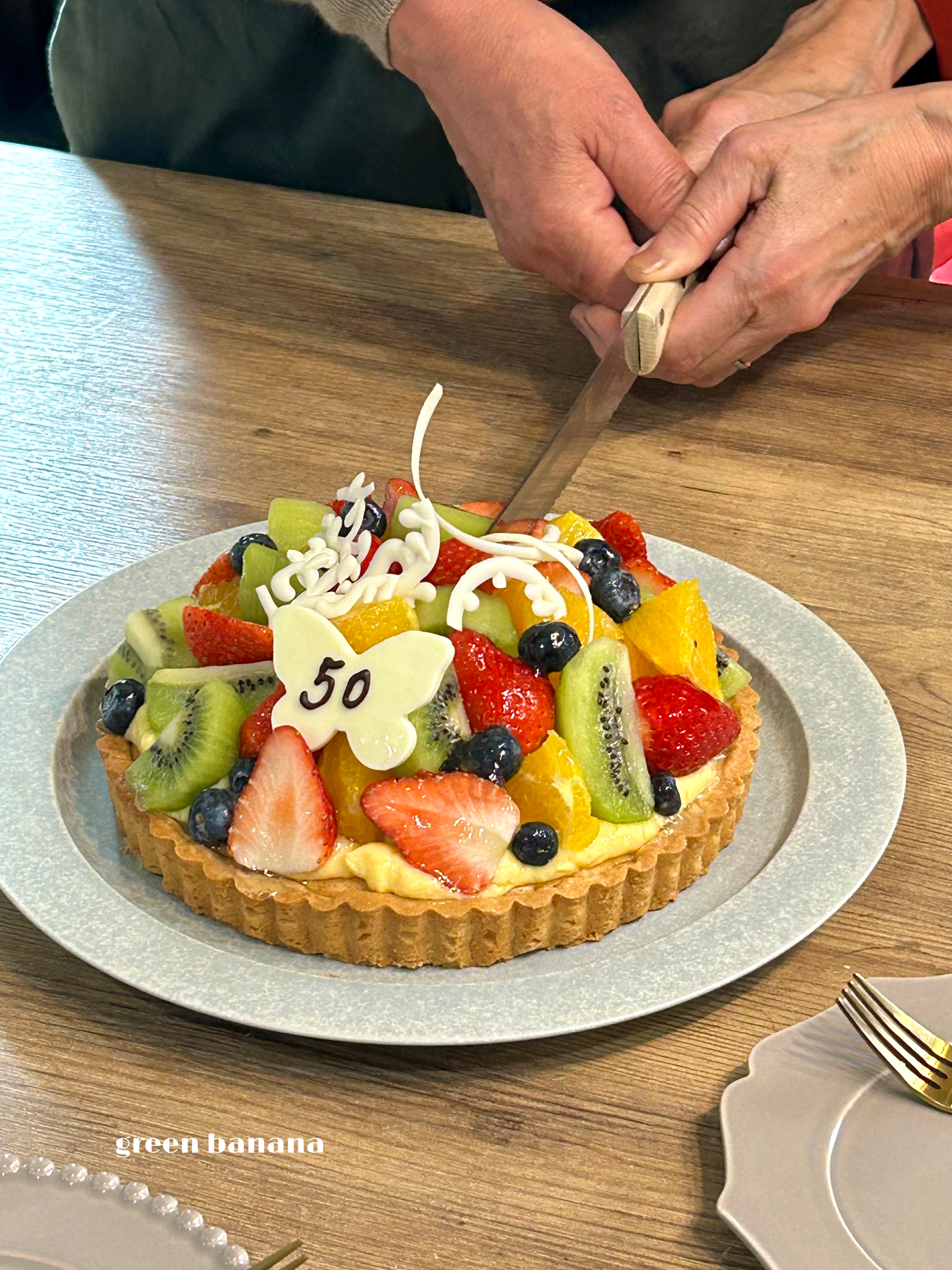 記念日のフルーツタルト*アーモンドパウダー不使用のタルトフィリングのレシピ。