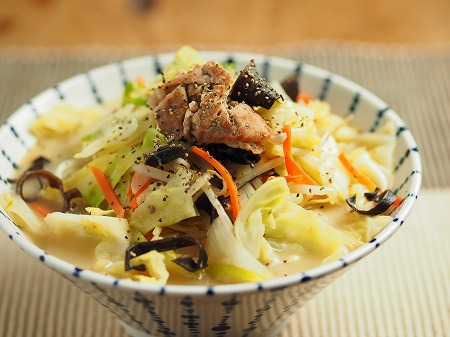 インスタントラーメンで簡単 野菜たっぷりタンメン風。