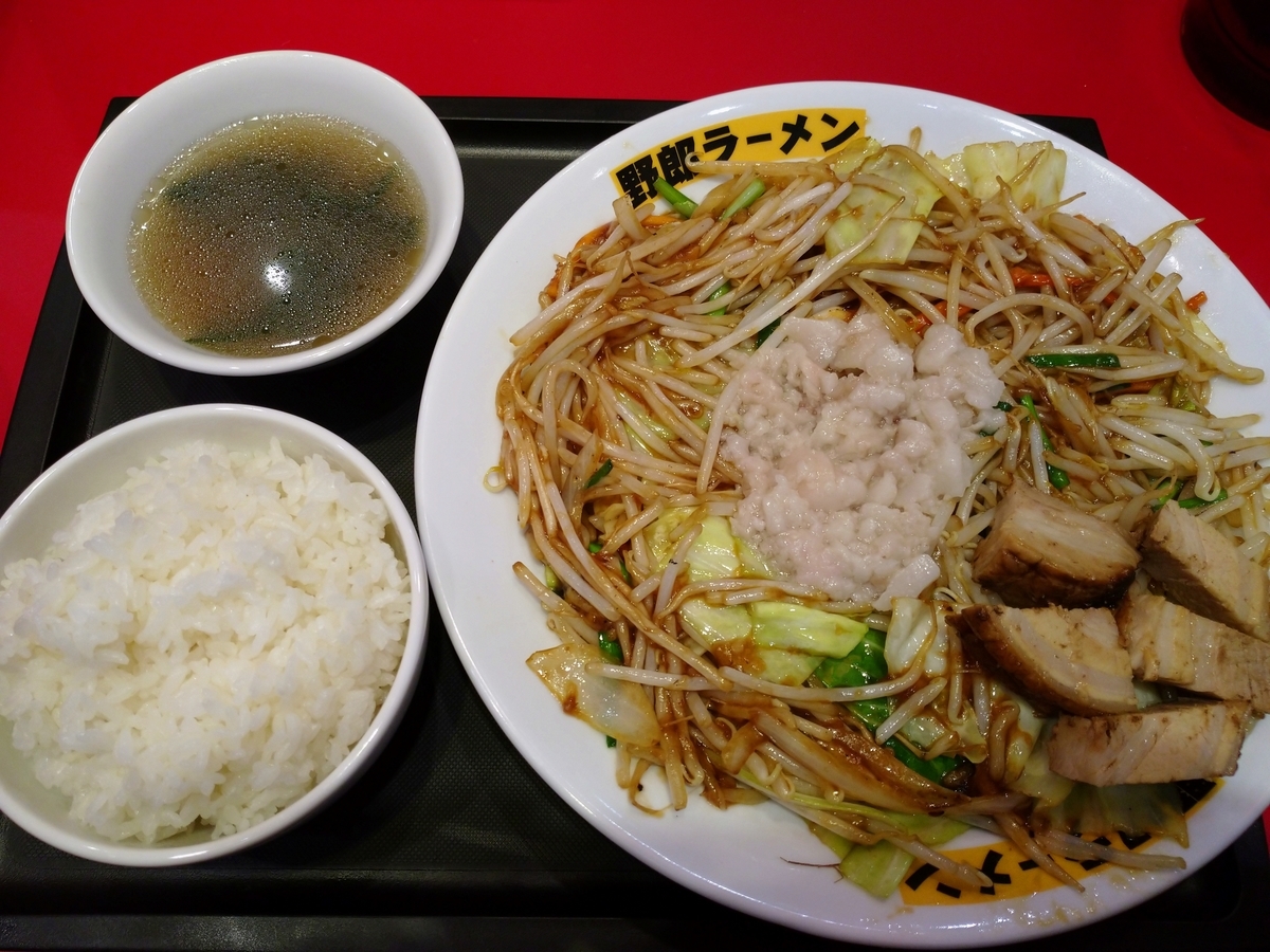 重量2kg超えの“本気定食”!『野郎ラーメン』で「豚野菜炒め定食・メガマシ・マンガ盛りゴハン」を食べてきた – ページ 2 – 食楽web。