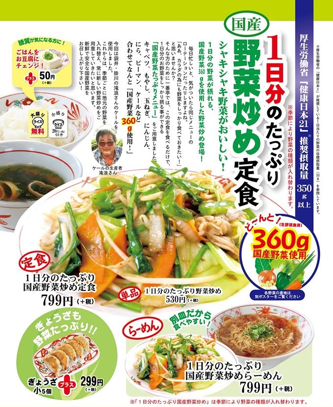 きちんとした野菜をしっかり食べることで、一番亭は皆さまを応援します! - らーめんの一番亭 静岡県東部中心、昭和26年創業です。 餃子・らーめん・定食。