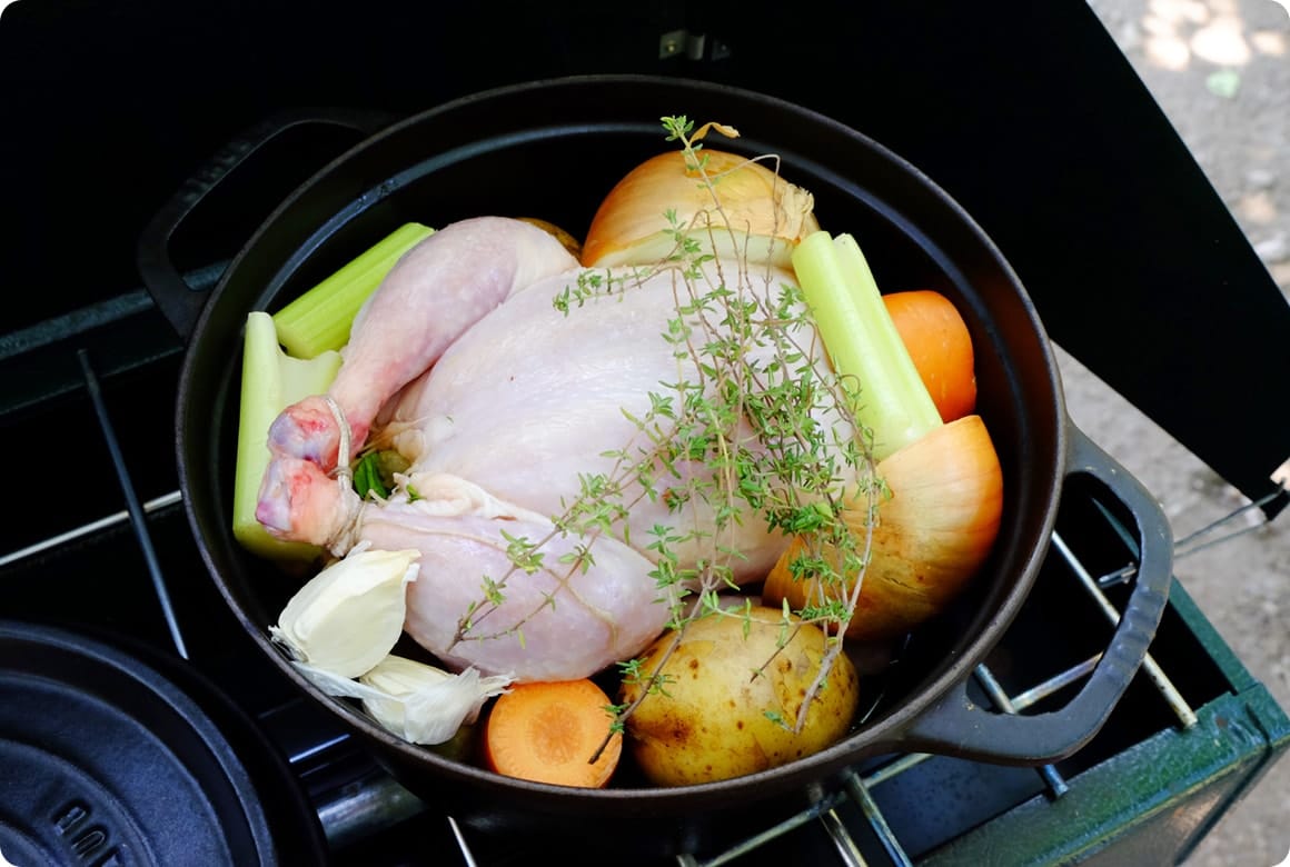 ダッチオーブンで簡単! 丸鶏のローストチキン - STRAYCATS - レンタルで行ける最上級キャンプ体験。