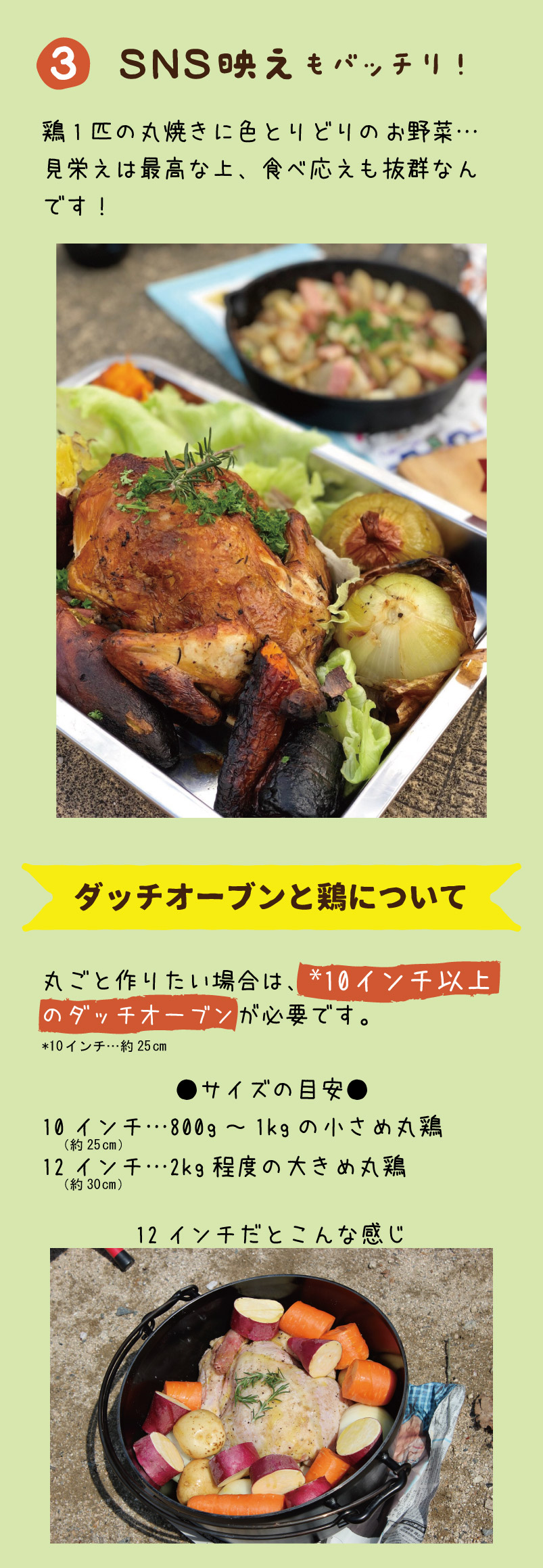 ローストチキンダッチオーブン料理のレシピ集アウトドアお役立ち情報。