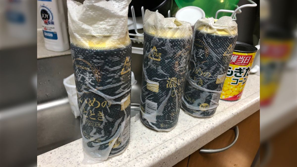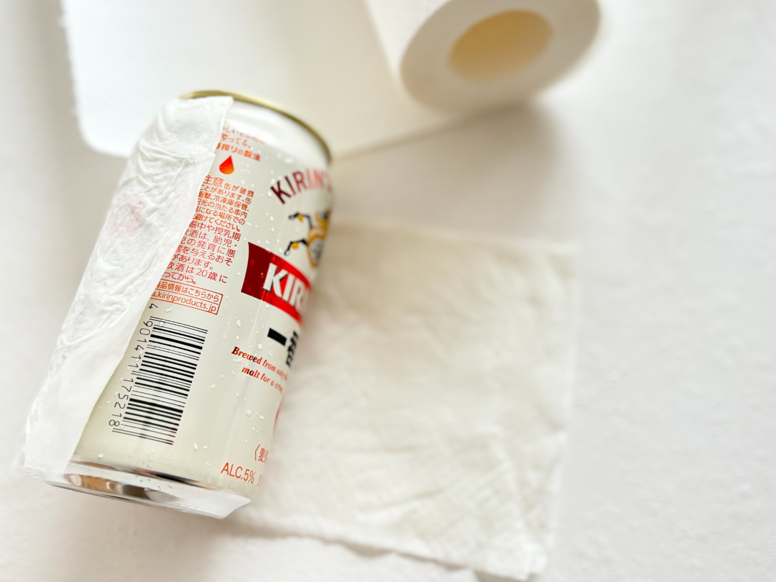 缶ビールを早く冷やすには、“アレ”を巻いて冷蔵庫に。